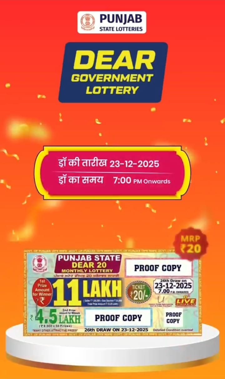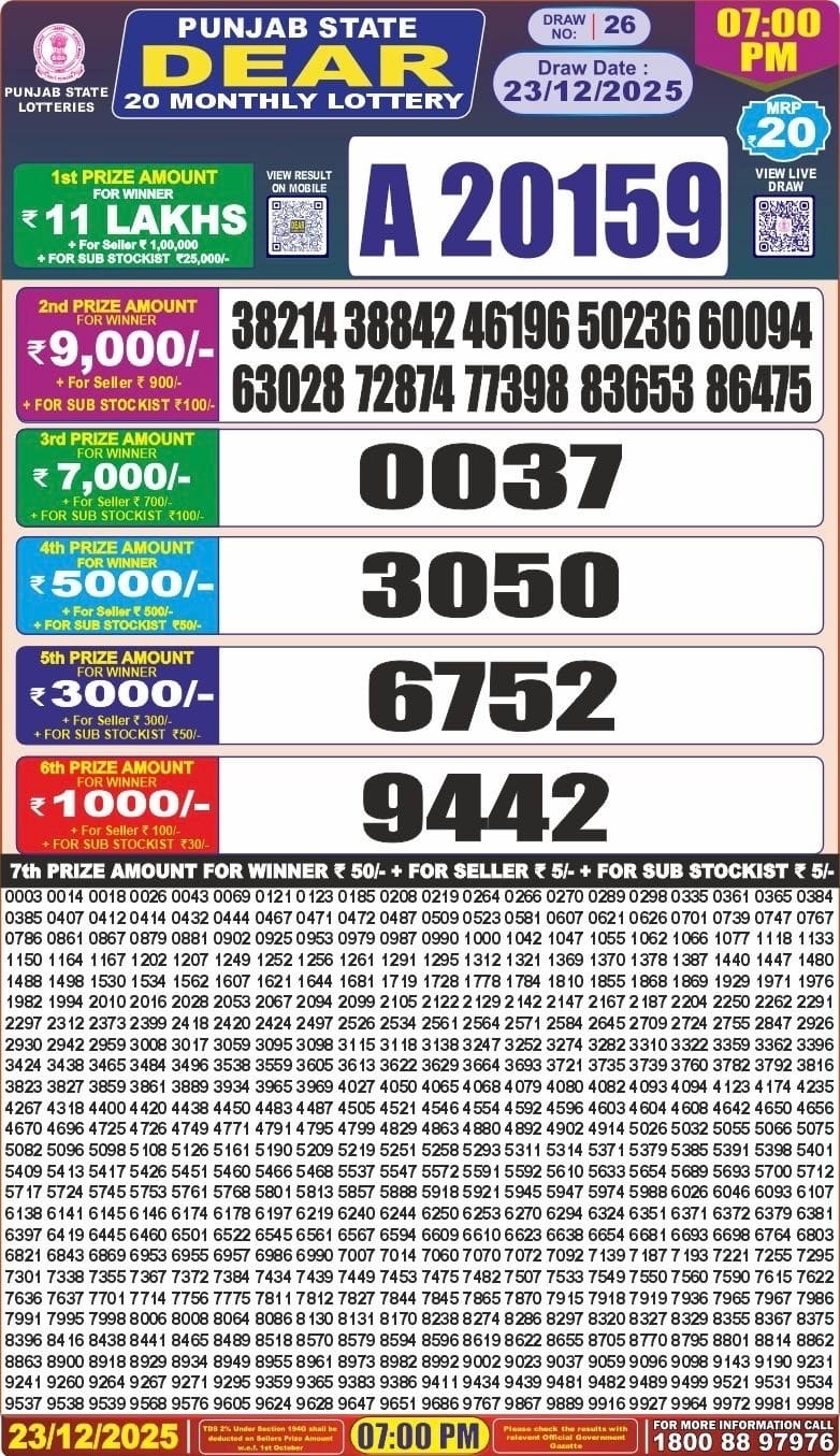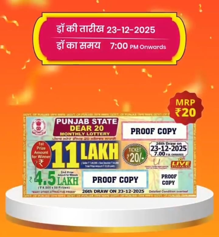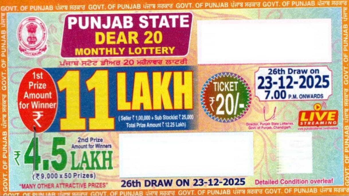 Punjab State Dear 20 Monthly Lottery 23 December 2025 At 7 PM