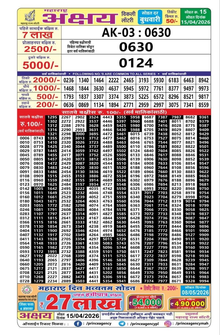 Maharashtra Akshay Weekly Draw Result 15.04.2026