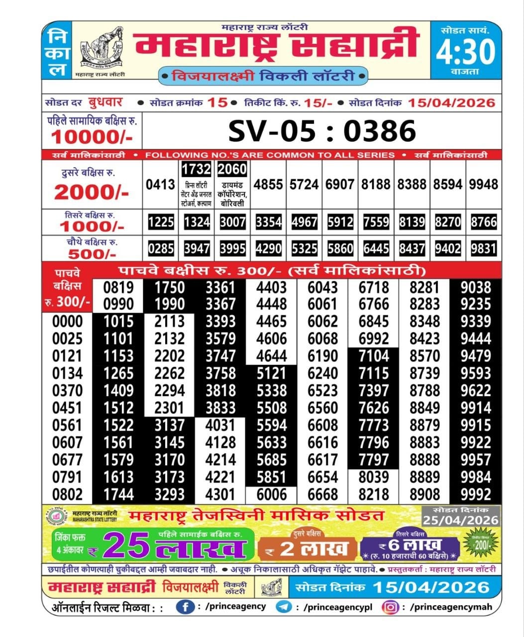 Maharashtra Sahyadri Weekly Draw 15.04.2026 Result 4.30 PM