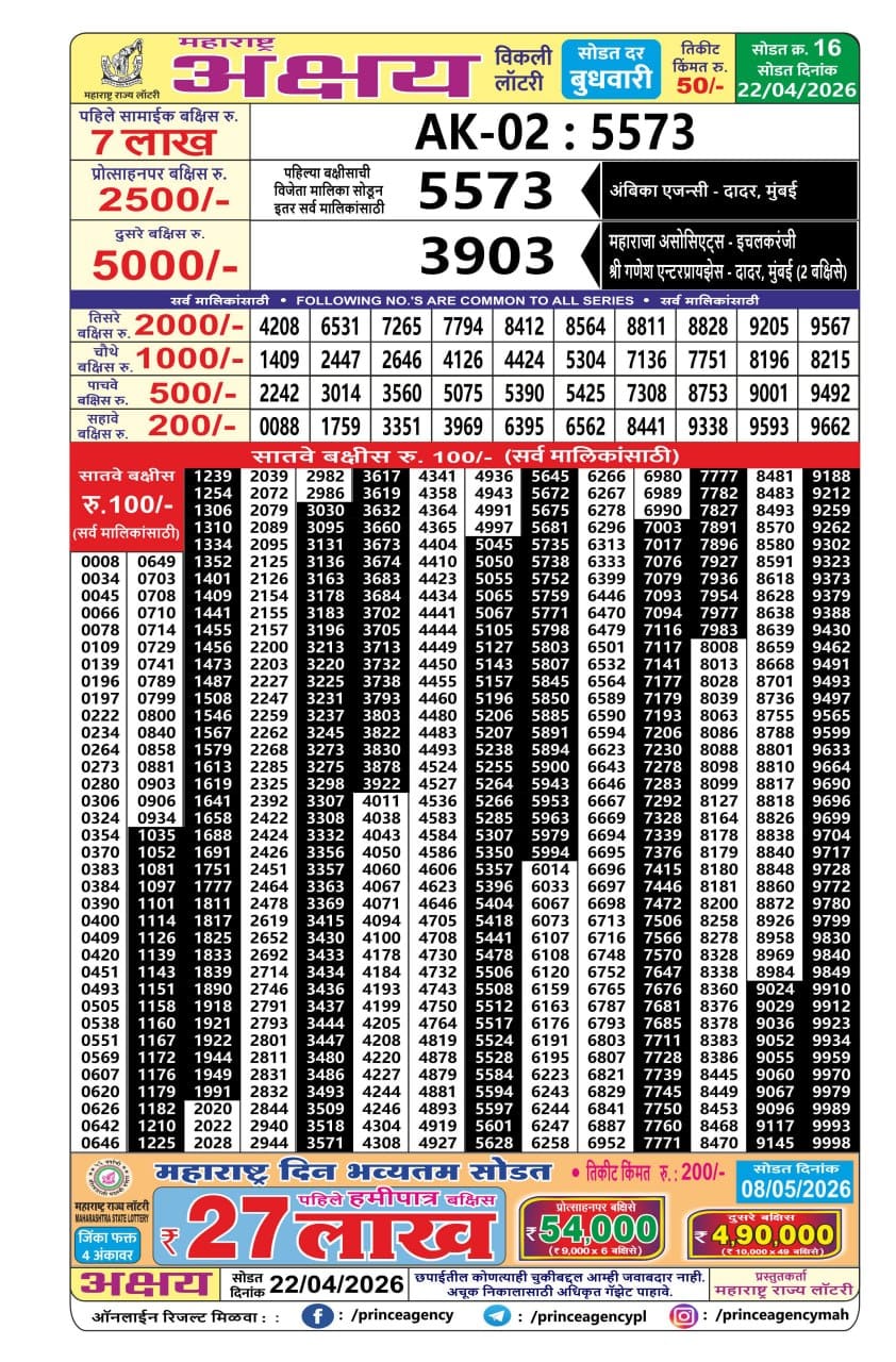 Maharashtra Akshay Weekly Draw Result 22.04.2026