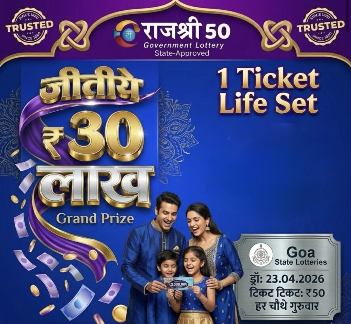 Goa State Rajshree 50 Monthly Lottery 23.04.2026 At 6.30 PM