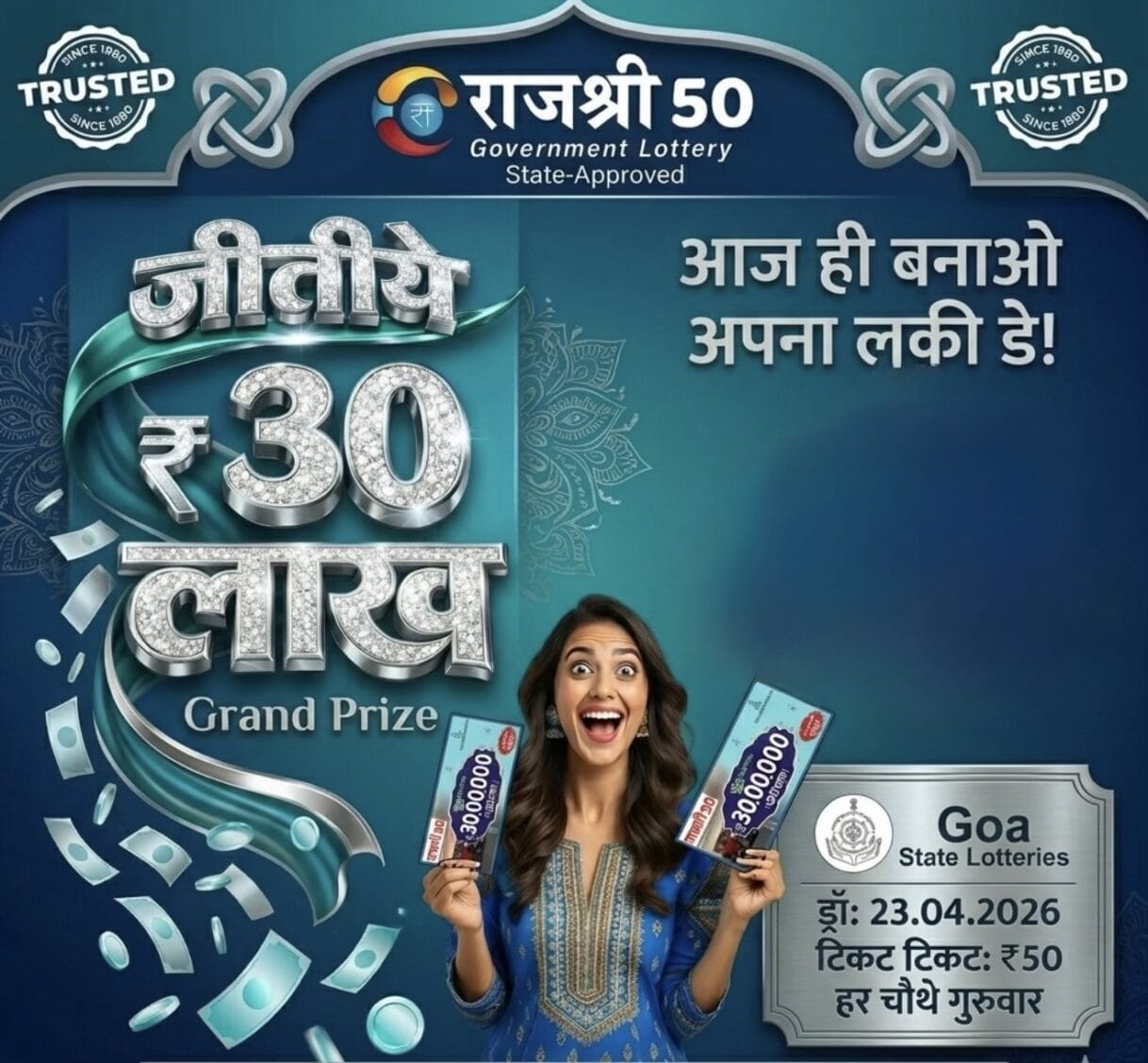 Goa State Rajshree 50 Monthly Lottery 23 April 2026 At 6.30 PM