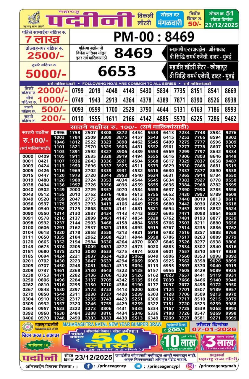 Maharashtra Padmini Weekly Draw Result 23.12.2025