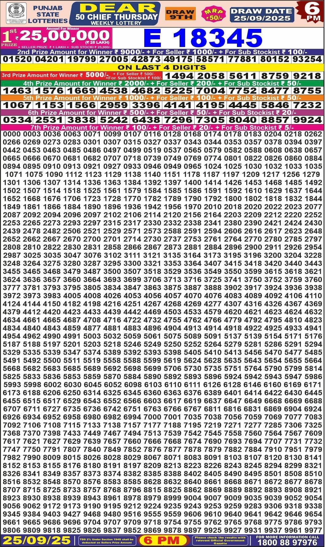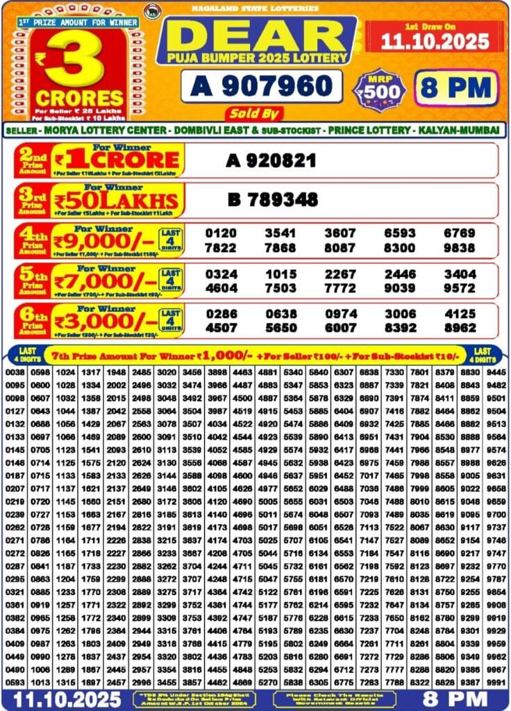 Dear Puja Bumper Lottery 11.10.2025 Result 8PM