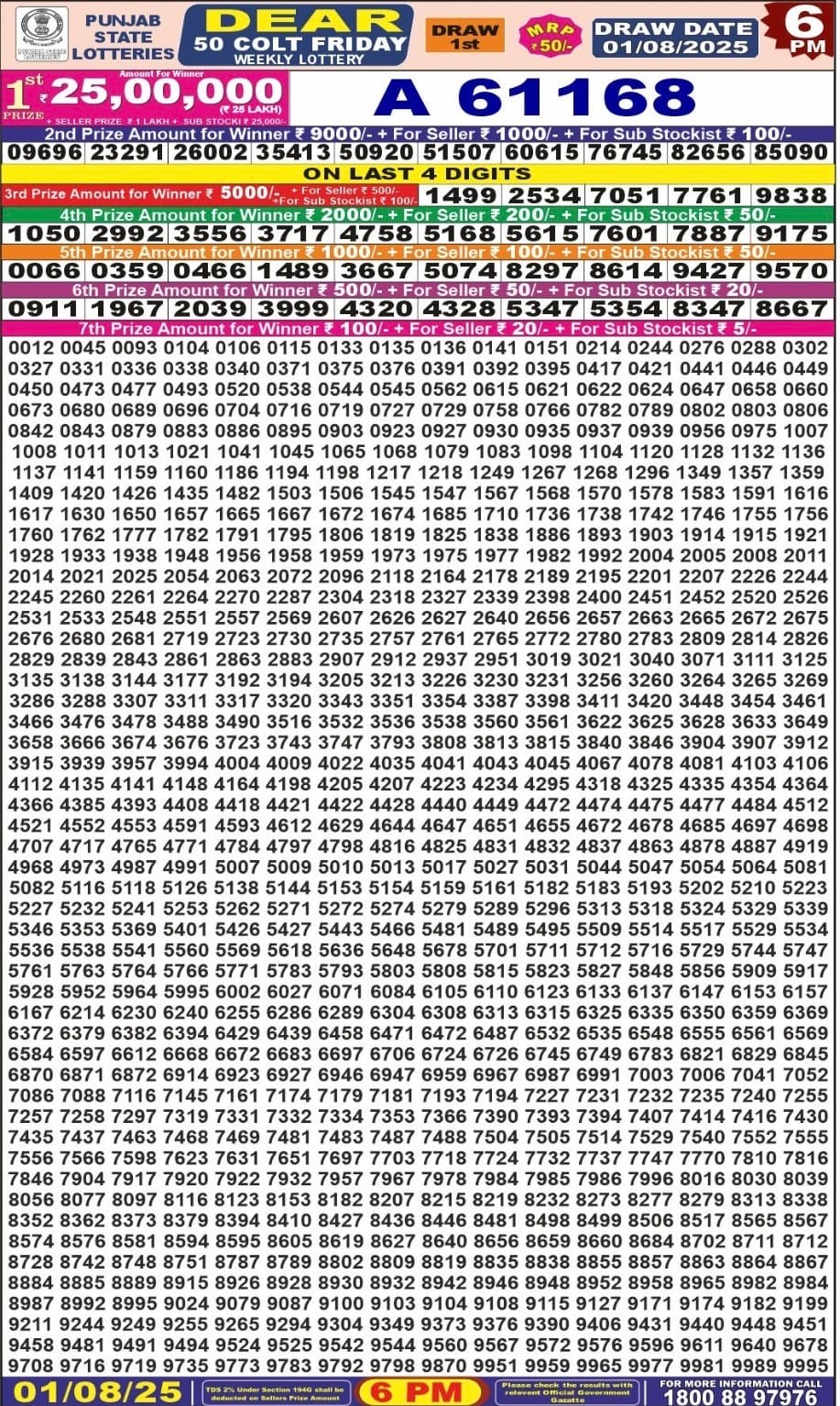 - 1 Crore (1) Cons ₹2,00,000 (4 Prizes)