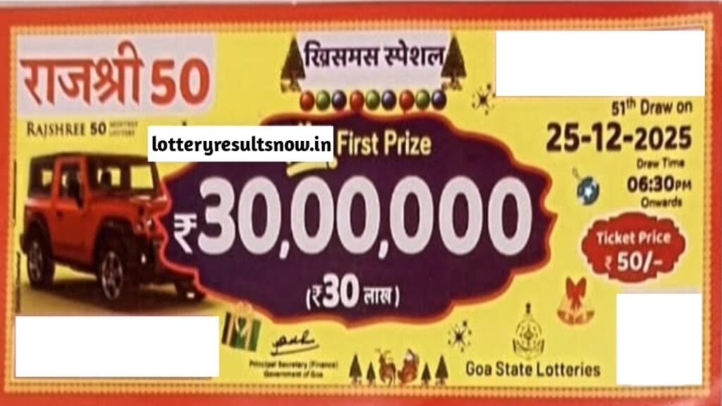 Goa State Rajshree 50 Monthly Lottery Draw On Thursday, 25 December 2025 At 6.30 PM Onwards. You Can Watch Result On Our Website lotteryresultsnow.in