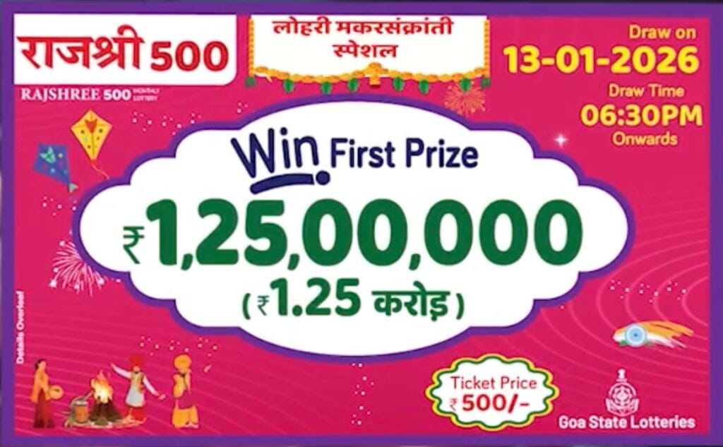 Goa State Rajshree 500 Monthly Lottery 13 January 2026 At 6.30pm