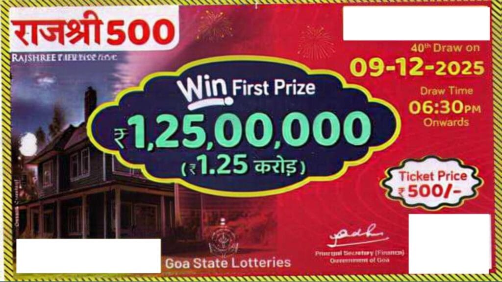 Goa State Rajshree 500 Monthly Lottery Result Declared On Tuesday, 9 December 2025 At 6:30 PM. You can watch result on our website lotteryresultsnow.in