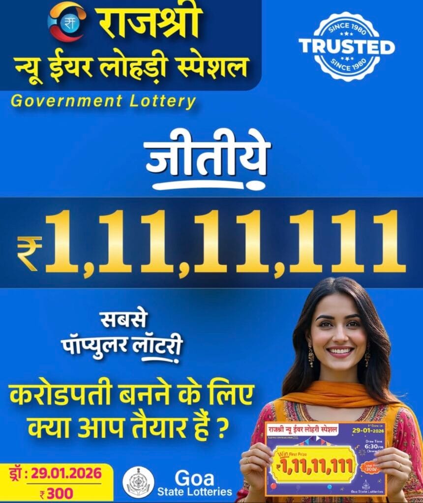 Goa state rajshree new year lohri special lottery drawn once a year and enhance the chance of winning ₹1,11,11,111 and many more attractive prizes with ₹300/-