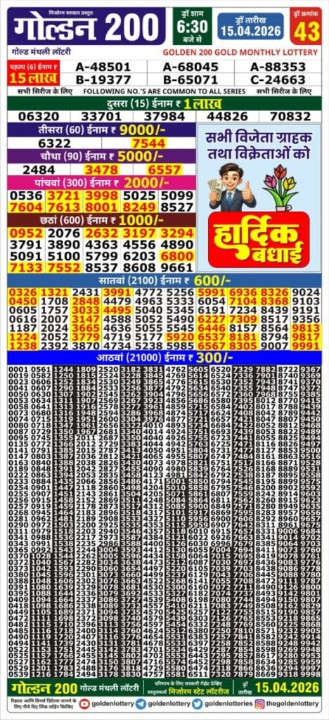 Golden 200 Gold Monthly Lottery 15.04.2026 Result 6.30 PM