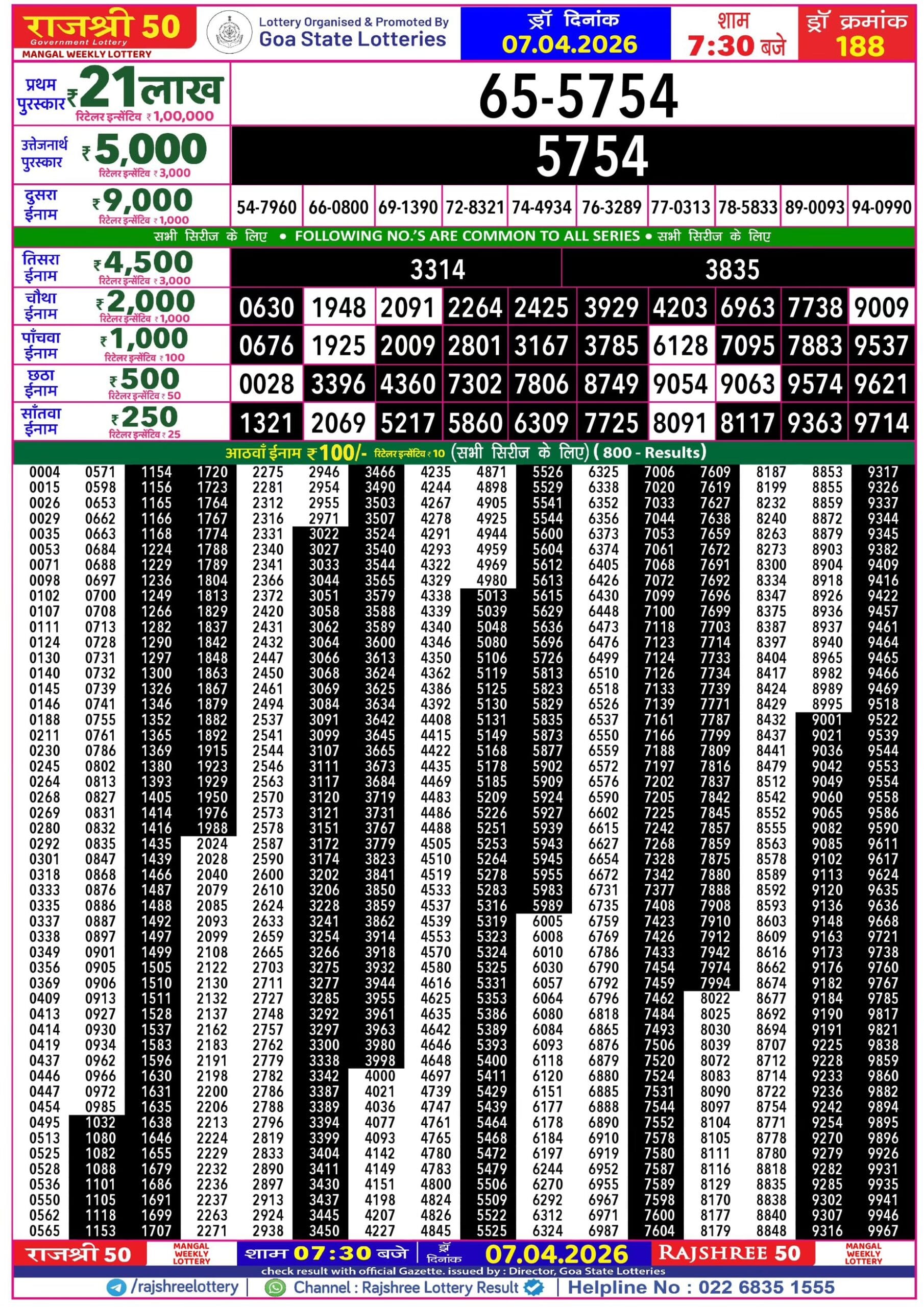 Golden 250 Gold Monthly Lottery 22.10.2025 Result 6.30pm 0 Likes 155 Views Related Articles 0 107Punjab State Dear 50 Beast Monday 6pm Lottery Result 05.01.2026 0 105Punjab State Dear 100 Monthly Lottery 13.1.2026 At 7 PM 0 118Maharashtra Sahyadri Deeplaxmi Weekly Draw 5.2.2026 Result 4.30pm 0 93Maharashtra Sahyadri Dhanlaxmi Weekly Draw 21.07.2025 Result 4.30pm
