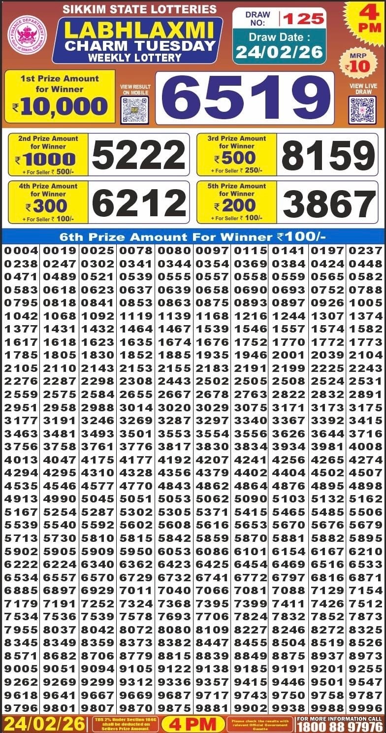 Golden Star Ravi Weekly Lottery 01.03.2026 Result 7 PM 0 Likes 57 Views Related Articles 0 54Punjab State Dear 50 Colt Friday Weekly Lottery 20.03.2026 Result 5 PM 0 62Punjab State Dear 20 Monthly Lottery 24 March 2026 At 7 PM Onwards 0 53Maharashtra Padmini Weekly Draw Result 20.01.2026 0 151Dear mahanadi Thursday Weekly 1pm result 17.07.2025
