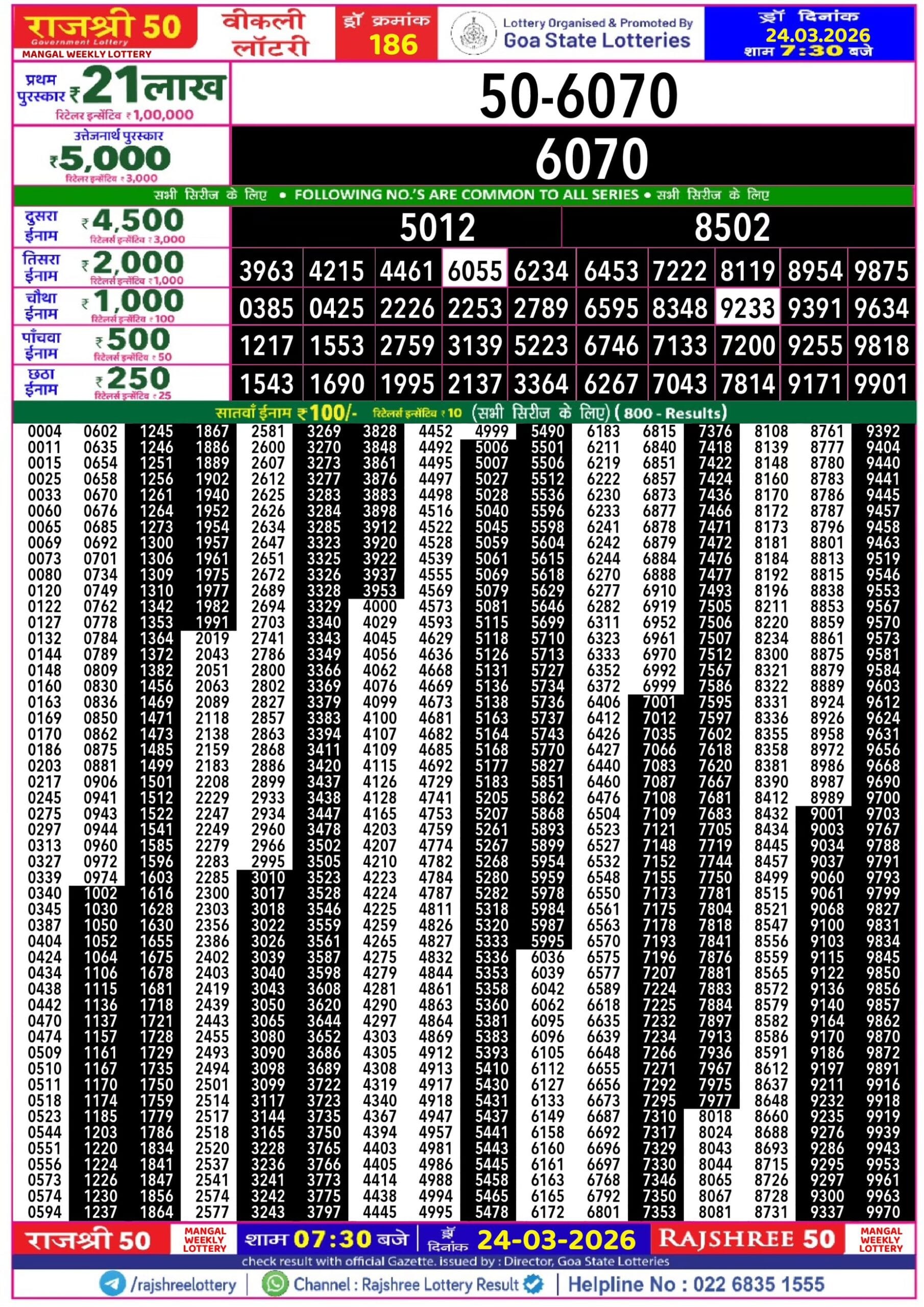 Golden Star Shani Weekly Lottery 28.03.2026 Result 7 PM 0 Likes 36 Views Related Articles 0 45Rajshree 50 Guru Weekly Lottery 19.2.2026 Result 7.30 PM 0 109Maharashtra Ganeshlaxmi Dhan Weekly Draw 07.11.2025 Result 5pm 0 112Maharashtra Ganeshlaxmi Ashadhi Special (Monthly) Draw Result 22.07.2025 0 18Golden Star Shukra Weekly Lottery 03.04.2026 Result 8.30 PM
