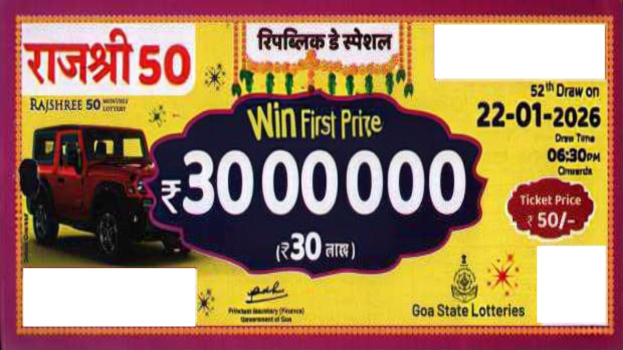 Golden Star Shukra Weekly Lottery 20.02.2026 Result 7 PM 0 Likes 16 Views Related Articles 0 86Goa state rajshree 50 monthlylottery 22.1.2026 at 6.30pm 0 94Rajshree 200 Monthly Lottery 18 December 2025 At 6.30 PM 0 86LabhLaxmi bliss weekly 4PM Result 21.07.2025 0 20Maharashtra Sahyadri Rajlaxmi Weekly Draw 20.02.2026 Result 4.30 PM