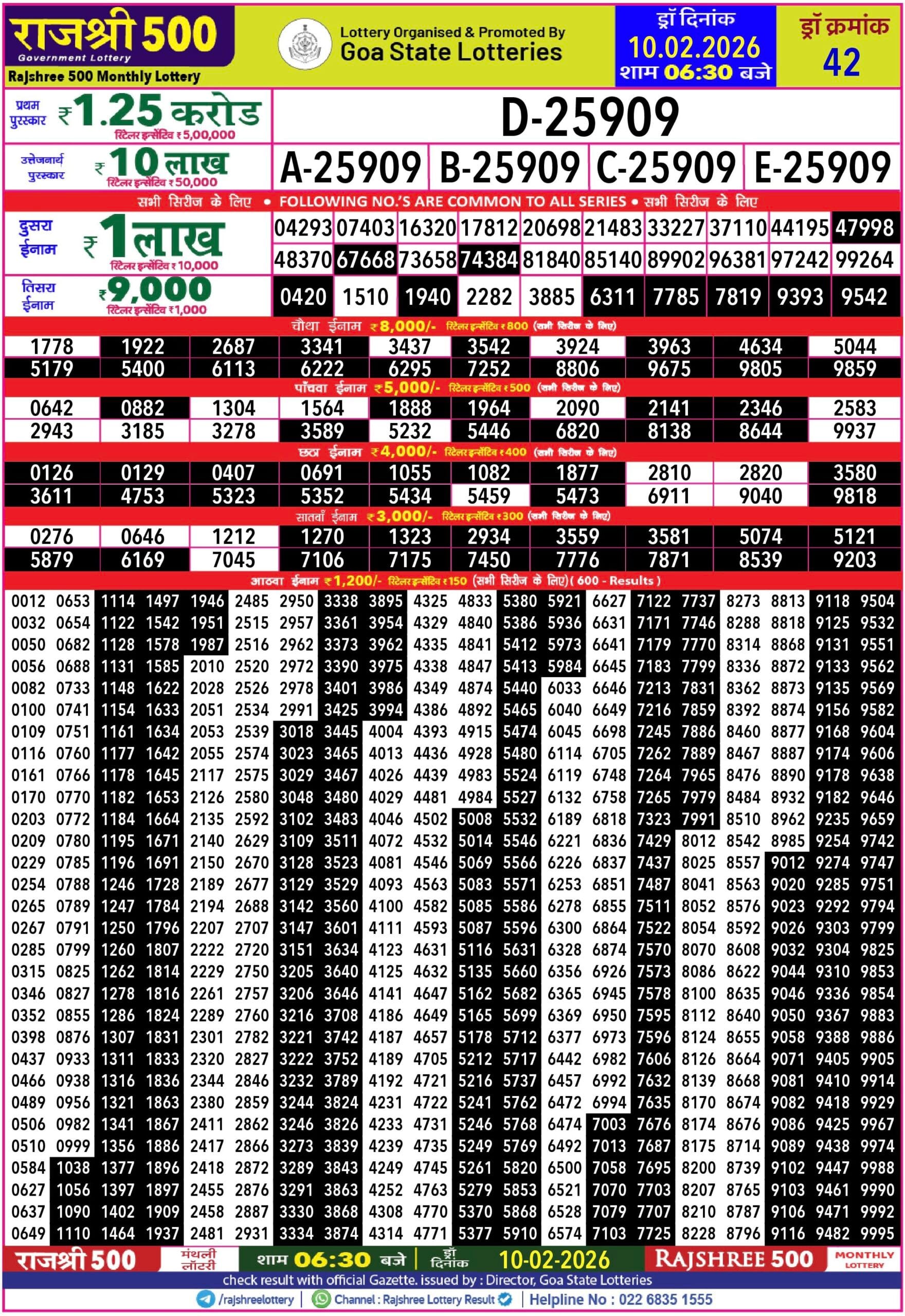Golden Star Shukra Weekly Lottery 6.2.2026 Result 7 PM 0 Likes 60 Views Related Articles 0 19Rajshree Tuesday Weekly Lottery 17.2.2026 Result 8 PM 0 97Rajshree 100 Monthly Lottery 6.11.2025 Result 6.30pm 0 51Rajshree 500 Monthly Lottery 10.2.2026 Result 6.30 PM 0 48Maharashtra Gajlaxmi Shukra Weekly Draw 23.01.2026 Result 4.45pm