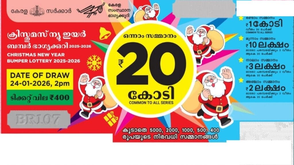 Kerala State Christmas And New Year Bumper 2026 Draw On Saturday, 24 January 2026 At 2 PM Onwards.