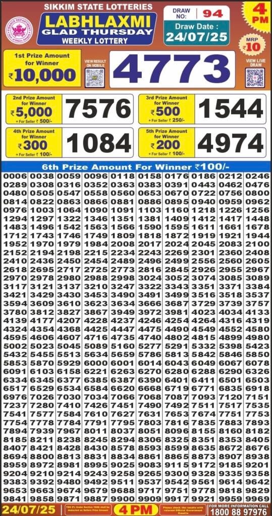 Labh Laxmi Glad weekly 4PM Result 24.07.2025 0 Likes 71 Views Related Articles 0 25Maharashtra Ganeshlaxmi Shubh Weekly Draw 23.12.2025 Result 5pm 0 42Maharashtra Ganeshlaxmi Shubh Weekly Draw 04.11.2025 Result 5pm 0 36Punjab State Dear 50 Beast Monday 6pm Lottery Result 24.11.2025 0 64Maharashtra Gajlaxmi Guru Weekly Draw 13.11.2025 Result 4.45pm