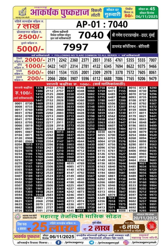 Maharashtra Akarshak Pushkaraj Weekly Draw Result 06.11.2025