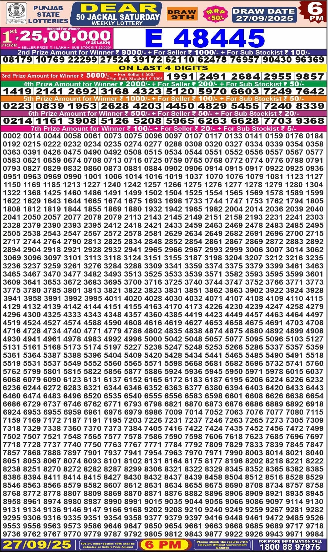 Maharashtra Akarshak Pushkaraj Weekly Draw Result 13.11.2025 0 Likes 137 Views Related Articles 0 42Maharashtra Ganeshlaxmi Vijayee Weekly Draw 17.12.2025 Result 5pm 0 57Punjab State Dear 50 Buster Wednesday 6pm Lottery Result 24.09.2025 0 85Punjab State Dear 50 Jackal Saturday 6pm Lottery Result 27.09.2025 0 92Punjab State Dear 50 Jackal Saturday 6pm Lottery Result 16.08.2025