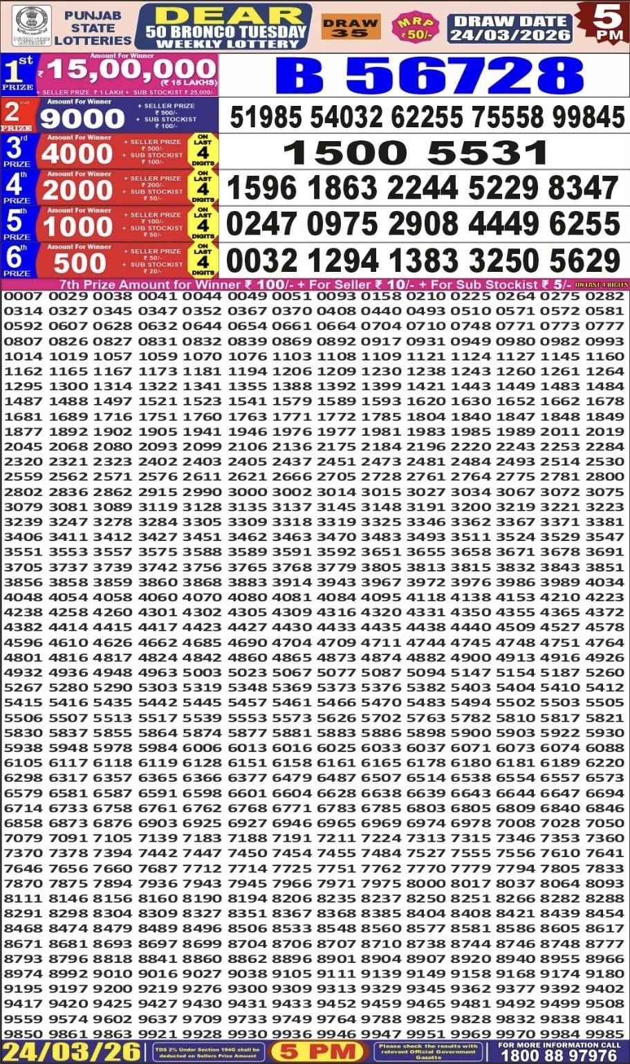 Maharashtra Gajlaxmi Guru Weekly Draw 26.02.2026 Result 4.30 PM 0 Likes 49 Views Related Articles 1 108Dear 10 Maple Monday 7pm result 21.07.2025 0 46Rajshree Night Guru Weekly Lottery 26.2.2026 Result 9 PM 0 29Punjab State Dear 50 Bronco Tuesday Weekly Lottery 24.03.2026 Result 5 PM 0 58Golden Star Som Weekly Lottery 09.02.2026 Result 7 PM