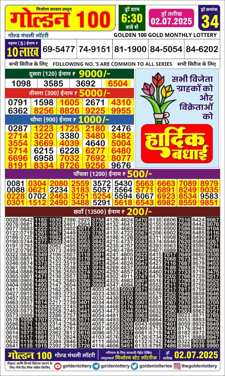Maharashtra Gajlaxmi Som Weekly Draw 15.12.2025 Result 4.45pm 0 Likes 40 Views Related Articles 0 57Maharashtra Sahyadri (Monthly) Draw Result 06.11.2025 0 16Maharashtra Gajlaxmi Weekly Lottery Draw 21.12.2025 Result 4.30pm 0 55Rajshree 30 Lottery 8:30PM Result 21.07.2025 0 77Golden 100 gold monthly lottery result 02.07.2025