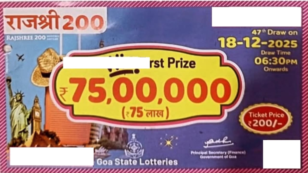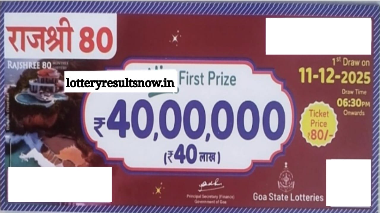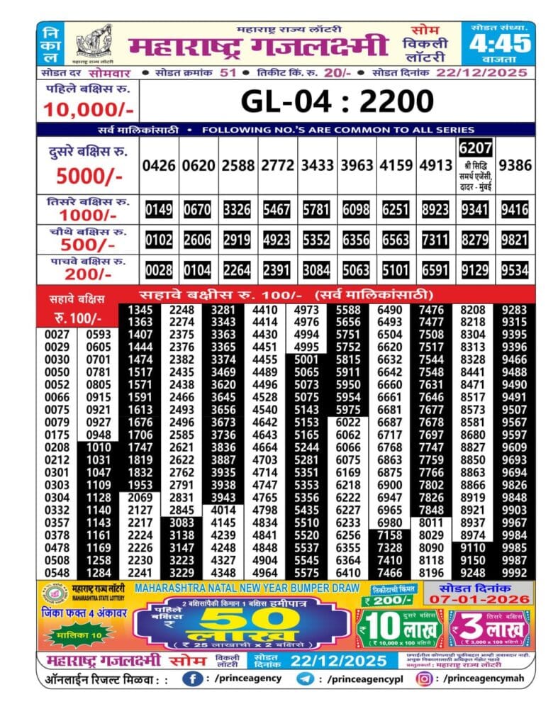 Maharashtra Gajlaxmi Som Weekly Draw 22.12.2025 Result 4.45 pm 0 Likes 21 Views Related Articles 2 66Goa State Rajshree 50 Monthly Lottery 27.11.2025 Result 6.30 PM 0 93Maharashtra Gajlaxmi Shukra Weekly Draw 31.10.2025 Result 4.45 PM 1 46Rajshree 80 Monthly Lottery 11.12.2025 At 6.30 PM 0 35Rajshree 200 monthly lottery 18.12.2025 at 6.30pm
