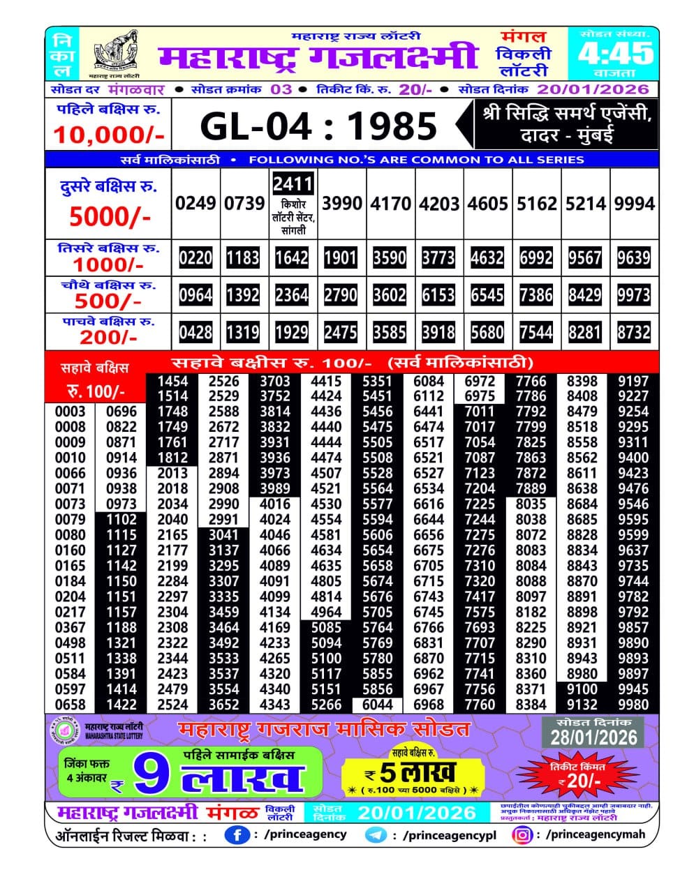 Maharashtra Ganeshlaxmi Dhan Weekly Draw 26.12.2025 Result 5pm 0 Likes 94 Views Related Articles 0 31Rajshree 300 Monthly Lottery 17.2.2026 At 6.30 PM 0 91Punjab State Dear 50 Bronco Tuesday 6pm Lottery Result 16.09.2025 0 63Maharashtra Gajlaxmi Mangal Weekly Draw 20.01.2026 Result 4.45pm 0 94Punjab State Dear 50 Jackal Saturday 6pm Lottery Result 13.09.2025