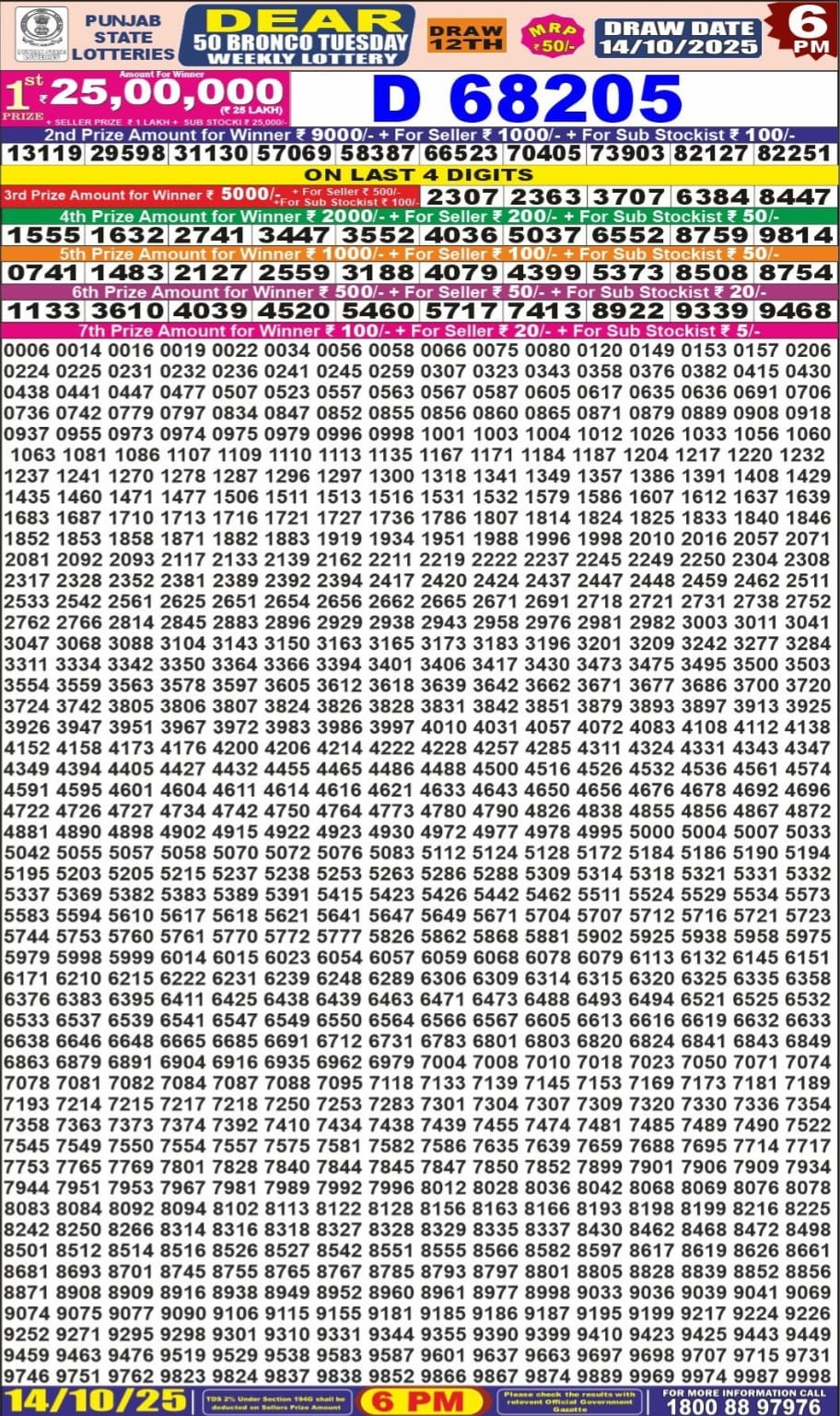 Maharashtra Padmini Weekly Draw Result 16.12.2025 0 Likes 49 Views Related Articles 1 61Dear comet tuesday weekly 6PM Result 22.07.2025 1 300Punjab state dear 200 monthly lottery 5-7-2025 at 8pm 0 55Maharashtra Vaibhavlaxmi Weekly Draw Result 05.12.2025 0 55Punjab State Dear 50 Bronco Tuesday 6pm Lottery Result 14.10.2025