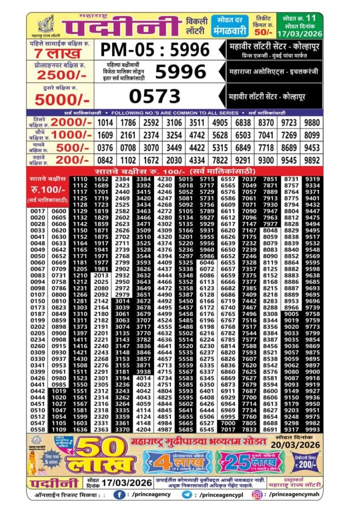 Maharashtra Padmini Weekly Draw Result 17.03.2026