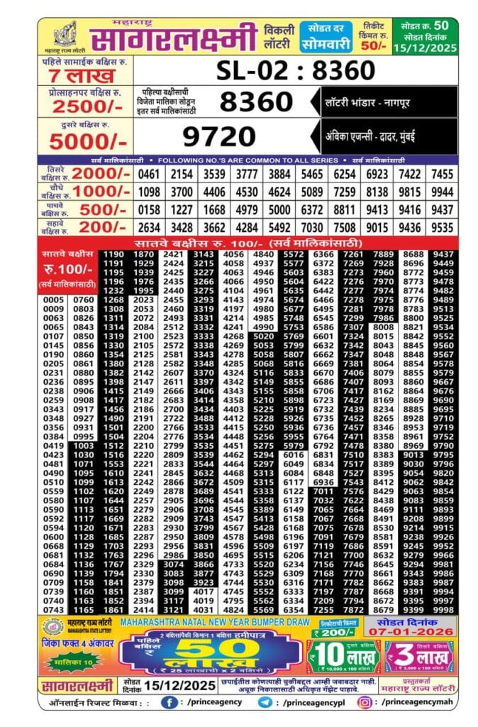 Maharashtra Sagarlaxmi Weekly Draw Result 15.12.2025 0 Likes 47 Views Related Articles 0 68Punjab State Dear Diwali Bumper 2025 Result Declared Soon 0 108Golden 200 gold monthly lottery result 16.07.2025 0 48Dear 10 blue lottery 1.30PM Result 21.07.2025 1 74Punjab state dear 1000 monthly lottery 13.9.2025 result 8pm