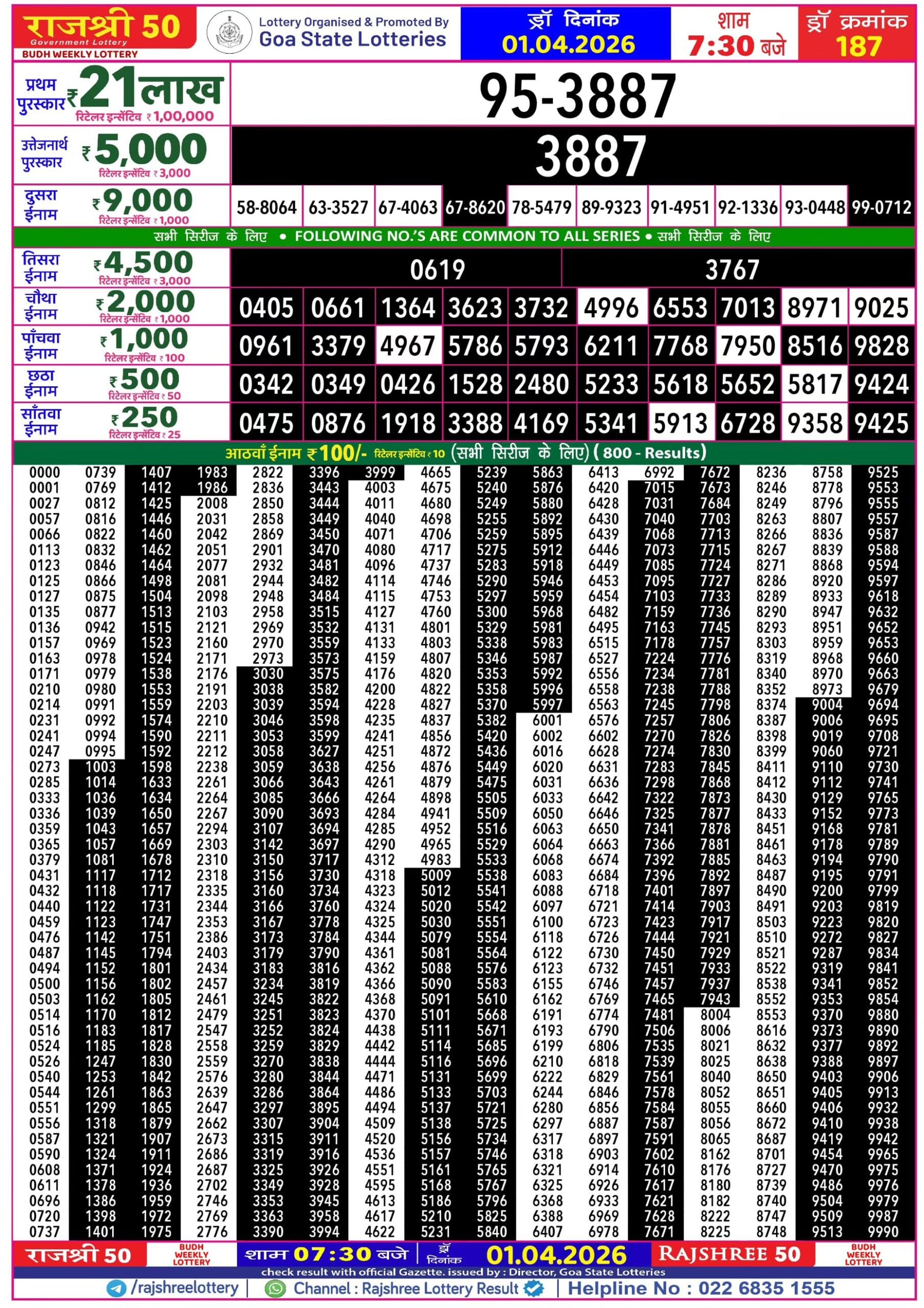 Maharashtra Sagarlaxmi Weekly Draw Result 27.10.2025 0 Likes 151 Views Related Articles 0 77Punjab State Dear 50 Ranger Sunday 6pm Lottery Result 26.10.2025 0 123Rajshree Diwali Special Lottery 30.10.2025 At 6.30 PM 0 66Rajshree 50 Budh Weekly Lottery 01.04.2026 Result 7.30 PM 0 111Mh. Ganeshlaxmi Samruddhi Weekly Draw 17.01.2026 Result 5pm