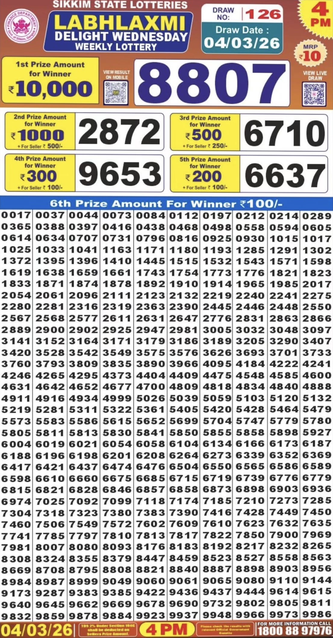Maharashtra Sahyadri Dhanlaxmi Weekly Draw 02.03.2026 Result 4.30 PM 0 Likes 75 Views Related Articles 0 62Sikkim State Labhlaxmi Delight Wednesday Weekly Lottery 04.03.2026 Result 4 PM 0 35Rajshree 10 Evening Guru Weekly Lottery 02.04.2026 Result 5.40 PM 0 56Rajshree Jasmine Weekly Lottery 20.2.2026 Result 4 PM 0 79Maharashtra Gajlaxmi Ravi Weekly Draw 08.02.2026 Result 4.45 PM