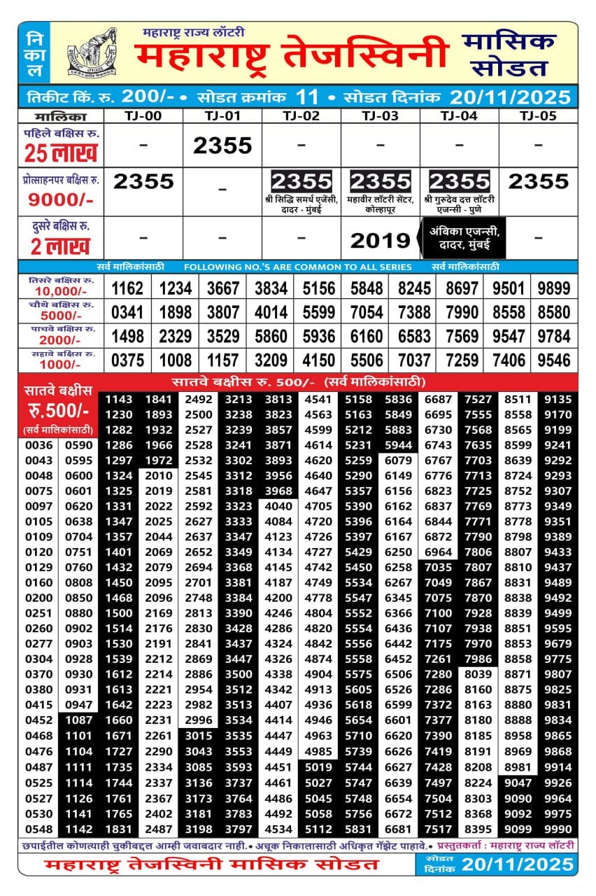 Maharashtra Sahyadri Dhanlaxmi Weekly Draw 22.12.2025 Result 4.30pm 0 Likes 16 Views Related Articles 0 65Maharashtra Gajlaxmi Ravi Weekly Draw 26.10.2025 Result 4.45pm 0 61Maharashtra Sahyadri Deeplaxmi Weekly Draw 20.11.2025 Result 4.30pm 0 36Maharashtra Sahyadri Vijayalaxmi Weekly Draw 17.12.2025 Result 4.30pm 0 52Punjab State Dear 50 Ranger Sunday 6pm Lottery Result 30.11.2025