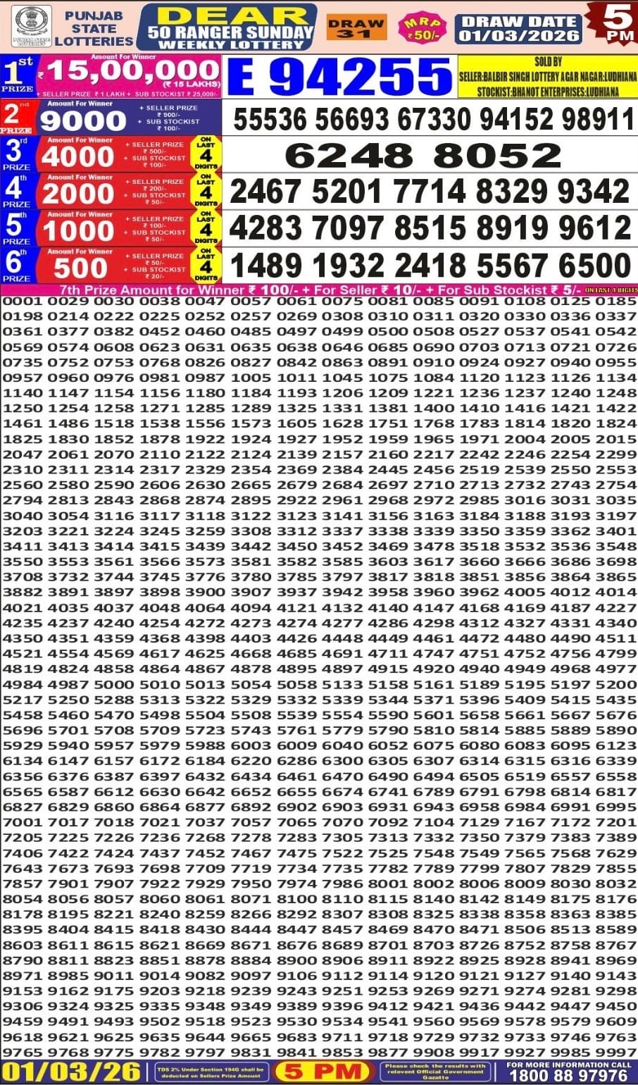 Maharashtra Sahyadri Vijayalaxmi Weekly Draw 08.04.2026 Result 4.30 PM 0 Likes 34 Views Related Articles 0 54Sikkim State Labhlaxmi Charm Tuesday Weekly Lottery 03.03.2026 Result 4 PM 0 140Maharashtra Akshay Weekly Draw Result 28.01.2026 0 274Rajshree 100 Monthly Lottery 5.2.2026 At 6.30 PM 0 54Sikkim State Labhlaxmi Power Sunday Weekly Lottery 15.03.2026 Result 4 PM