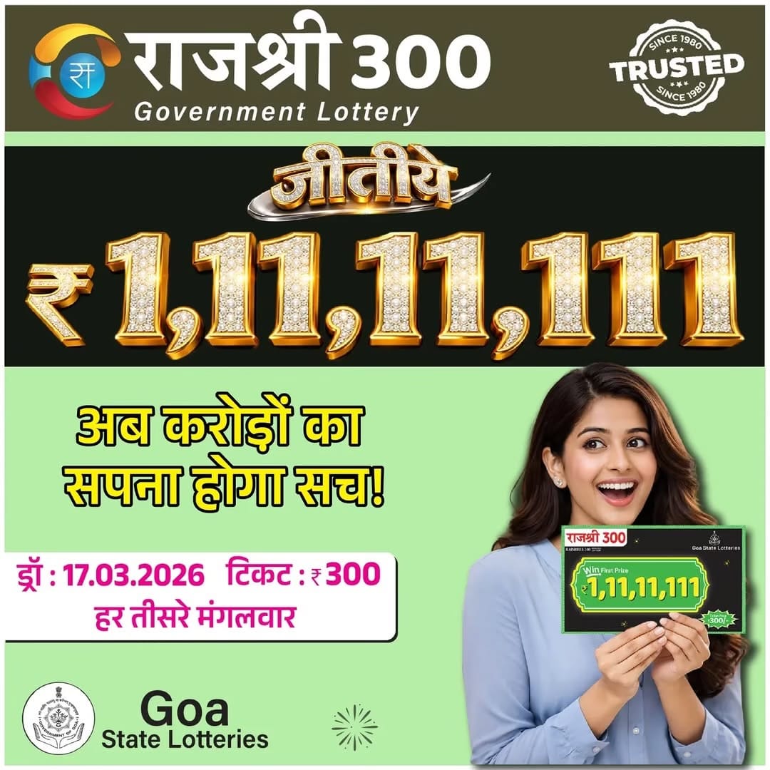 Maharashtra Vaibhavlaxmi Weekly Draw Result 27.02.2026 0 Likes 71 Views Related Articles 0 95Rajshree 250 Monthly Lottery 6.1.2026 Result 6.30 PM 1 83Rajshree 300 Monthly Lottery 17.3.2026 At 6.30 PM 0 95Maharashtra Ganeshlaxmi Dhan Weekly Draw 13.02.2026 Result 5 PM 0 53Rajshree Lotus Weekly Lottery 05.03.2026 Result 4 PM