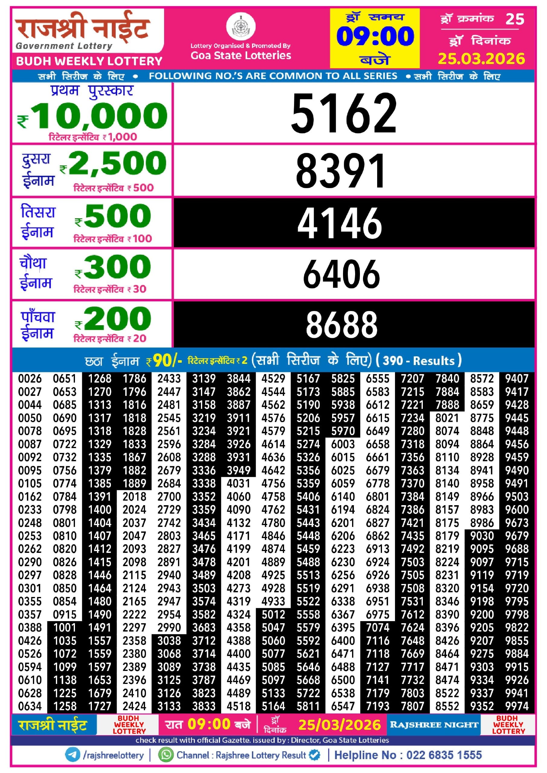 Maharashtra Vaibhavlaxmi Weekly Draw Result 28.11.2025