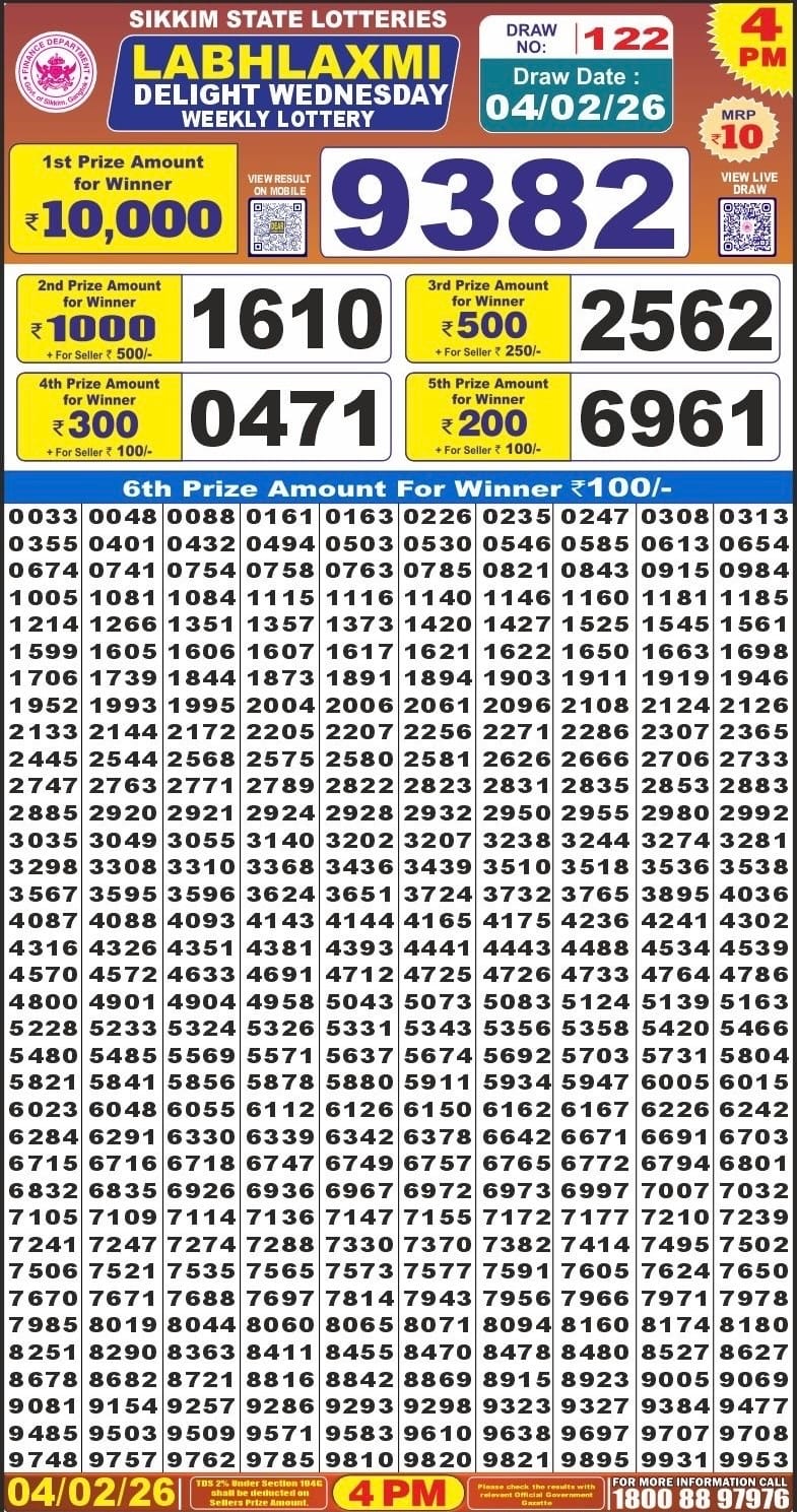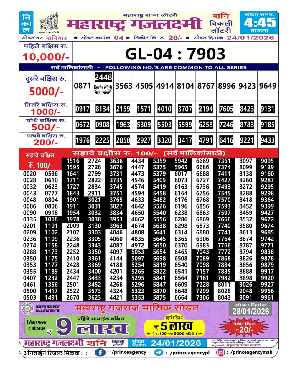 Nagaland State Dear Mahashivratri Bumper 21.2.2026 Result 6 PM 0 Likes 24 Views Related Articles 1 46Punjab State Dear 20 Monthly Lottery 27 January 2026 At 7 PM 0 97Punjab state dear 100 monthly lottery 12 August 2025 At 6 PM 0 41Sikkim State Labhlaxmi Delight Weekly Lottery 4.2.2026 Result 4 PM 0 61Maharashtra Gajlaxmi Shani Weekly Draw 24.01.2026 Result 4.45pm