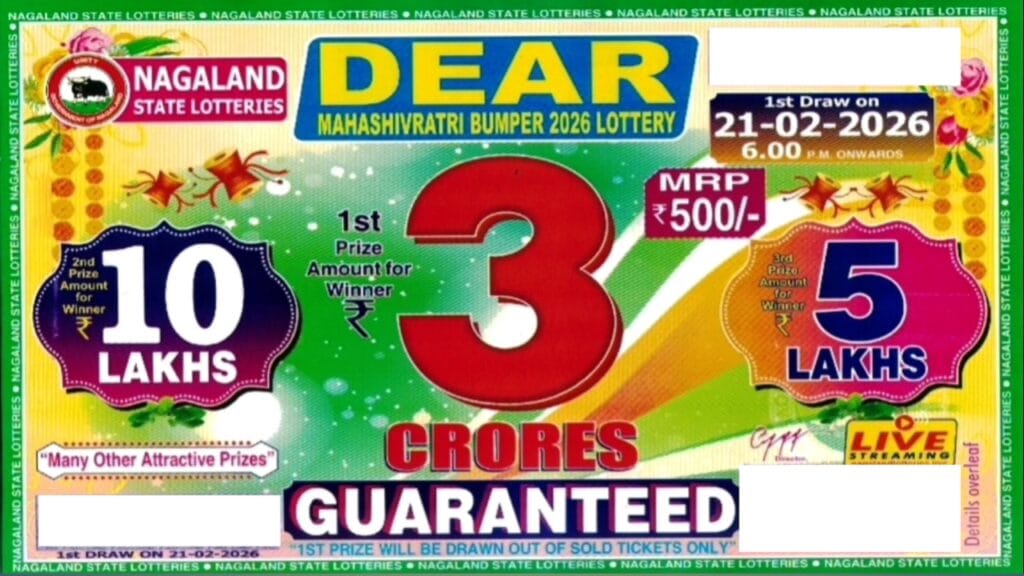 Nagaland State Dear Mahashivratri Bumper 1st Draw On Saturday, 21 Febraury 2026 At 6 PM. You can watch result on our website lotteryresultsnow.in