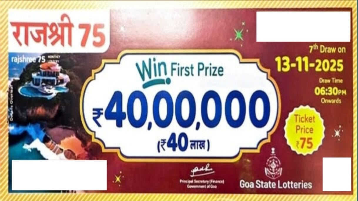 Rajshree 75 monthly lottery 13.11.2025 at 6.30pm