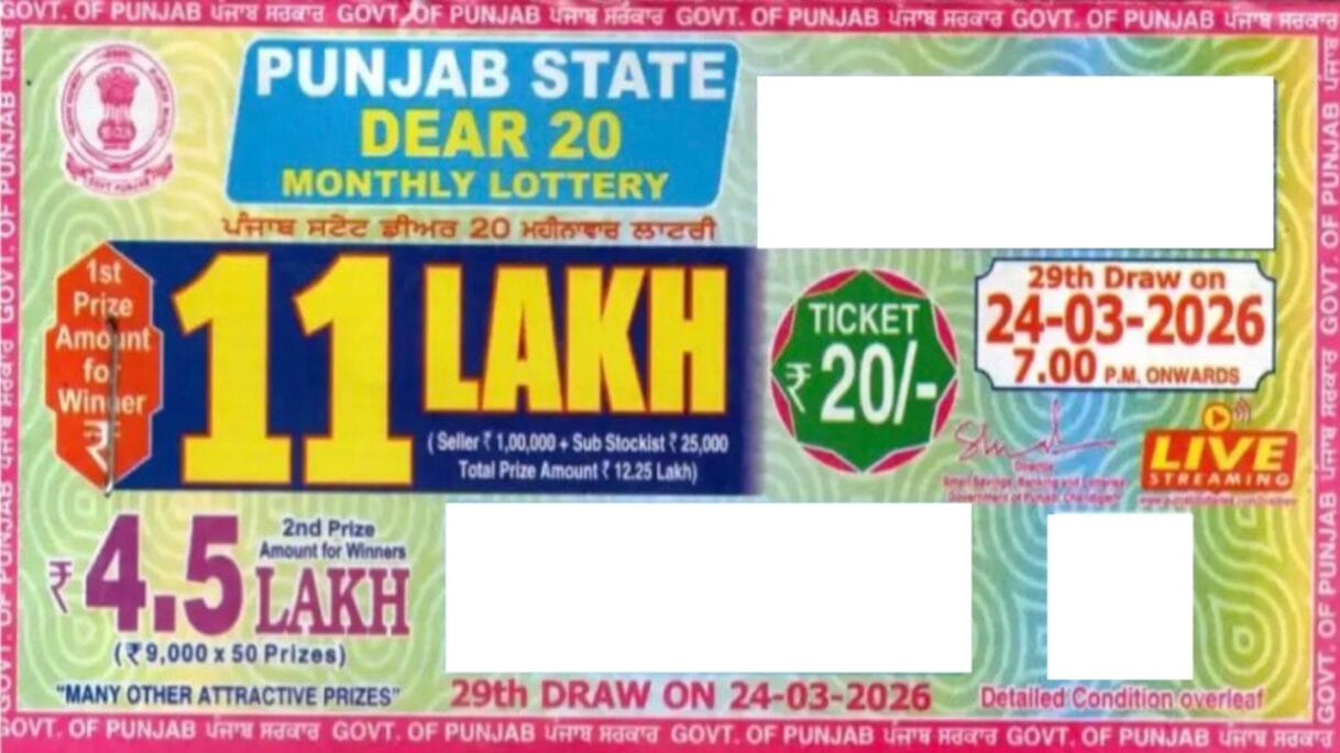 Punjab State Dear 20 Monthly Lottery 24 March 2026 At 7 PM Onwards
