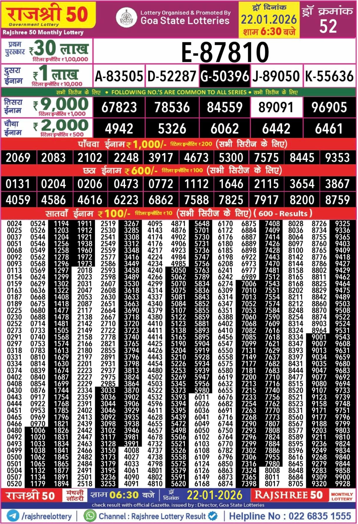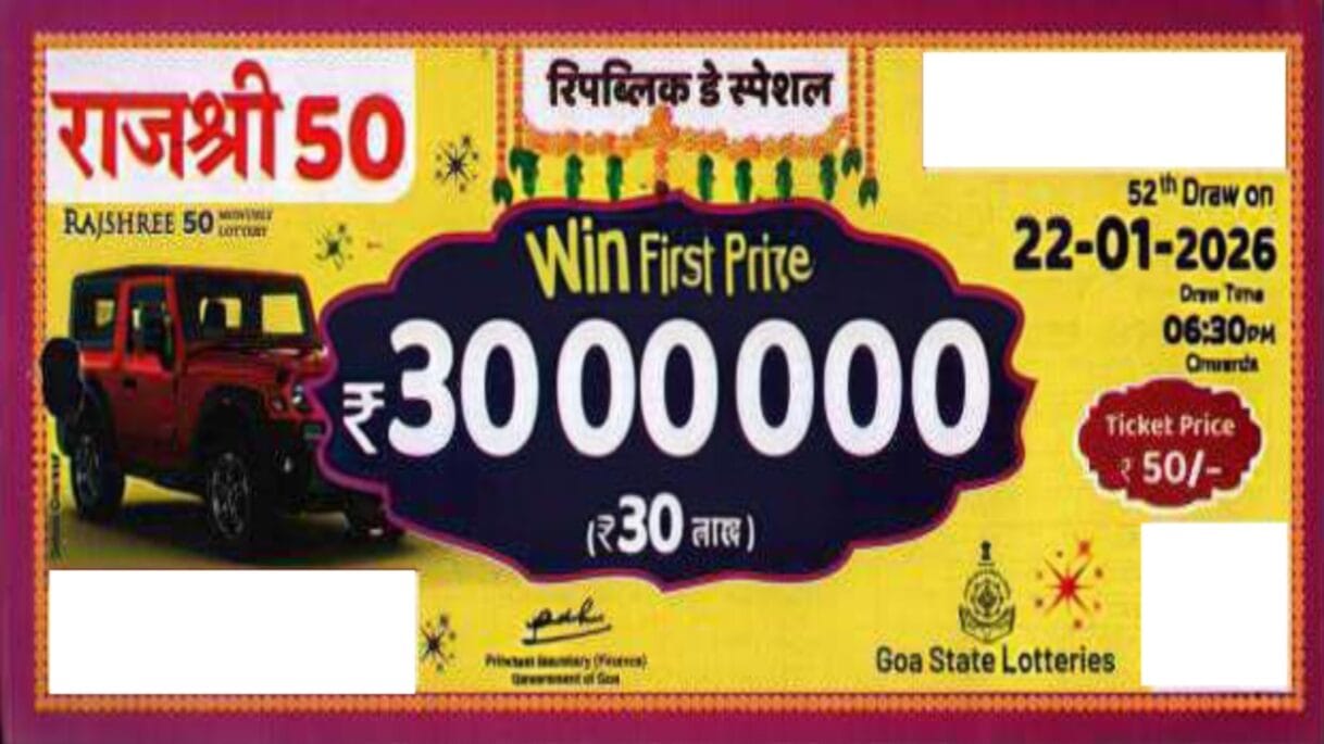 Goa state rajshree 50 monthlylottery 22.1.2026 at 6.30pm