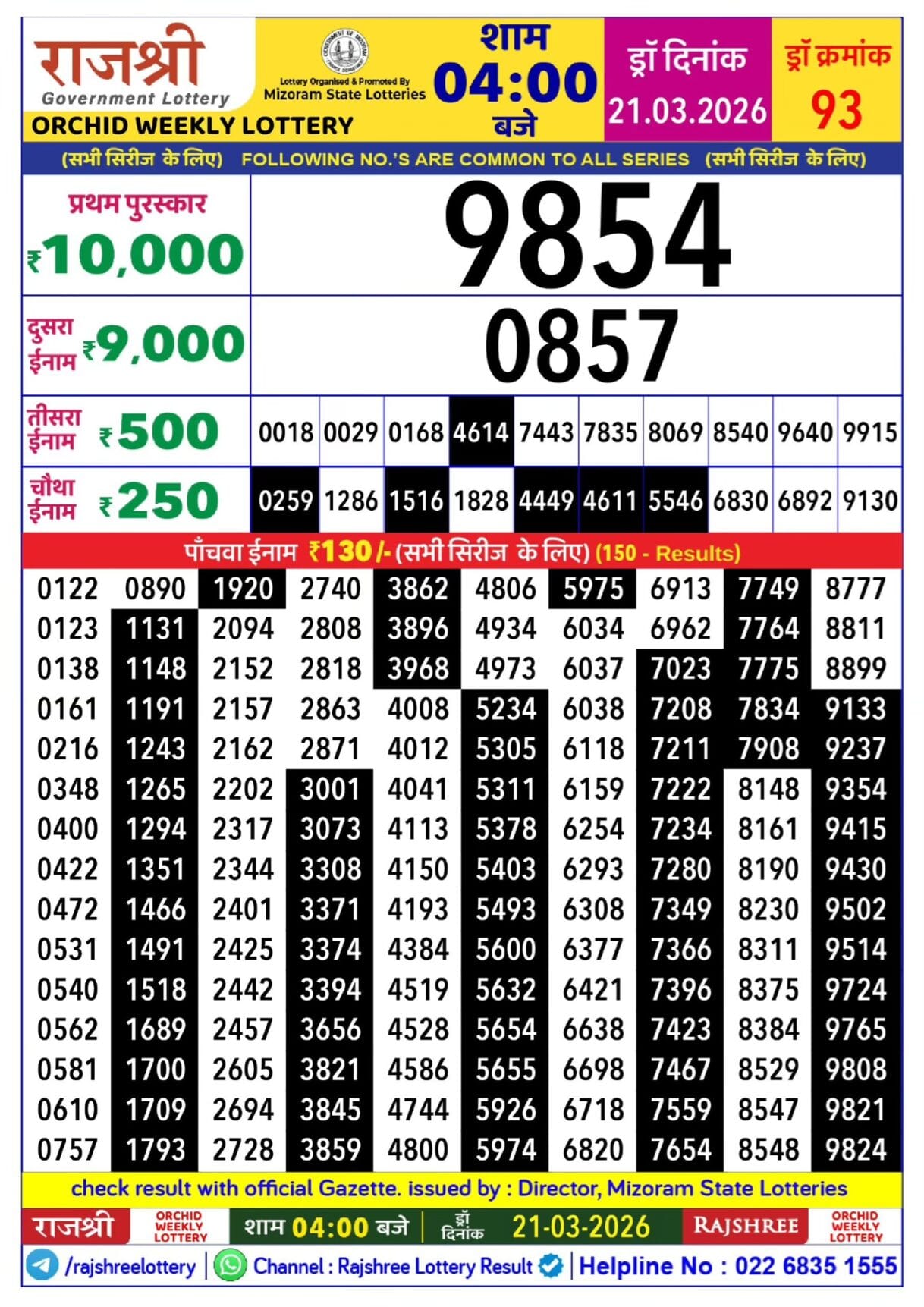 Rajshree Orchid Weekly Lottery 21.03.2026 Result 4 PM