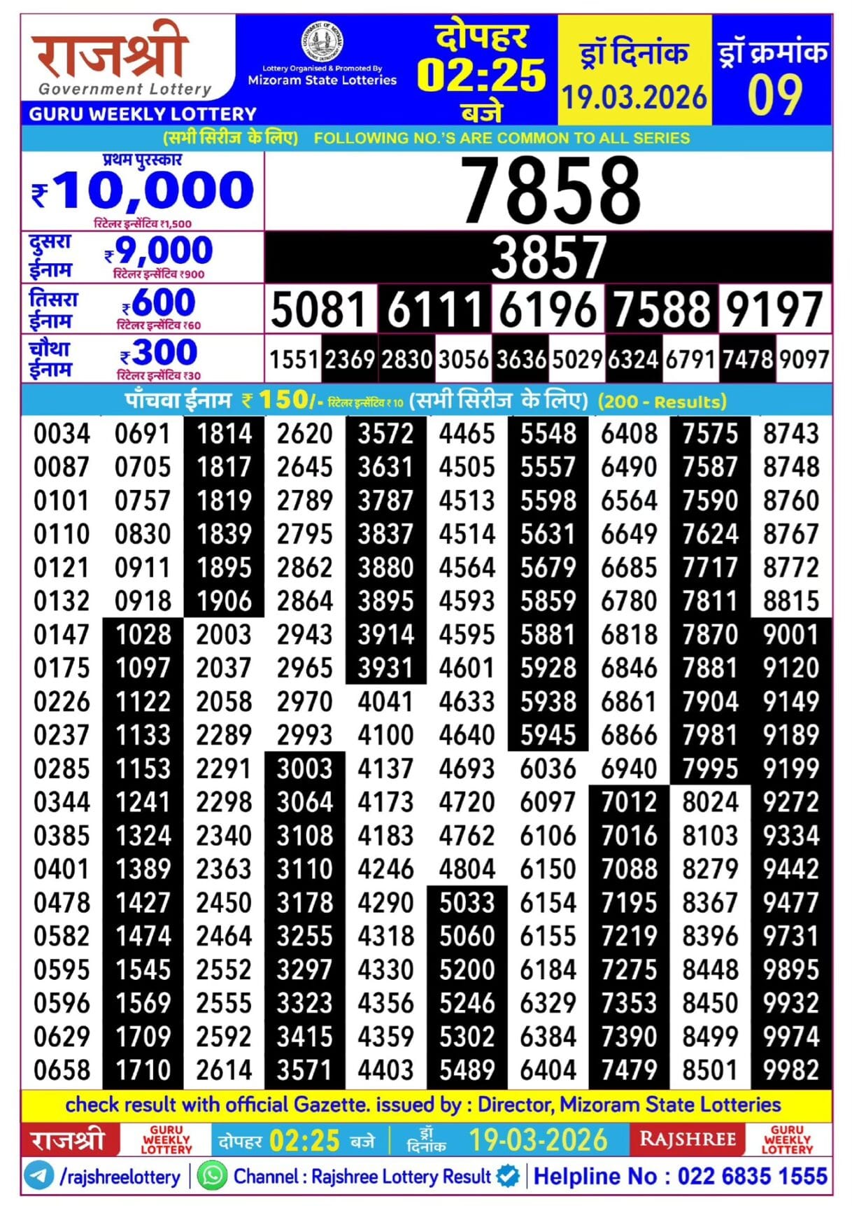 Rajshree Guru Weekly Lottery 19.03.2026 Result 2.25 PM