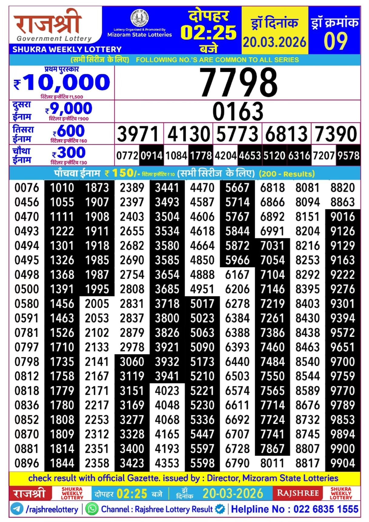 Rajshree Shukra Weekly Lottery 20.03.2026 Result 2.25 PM