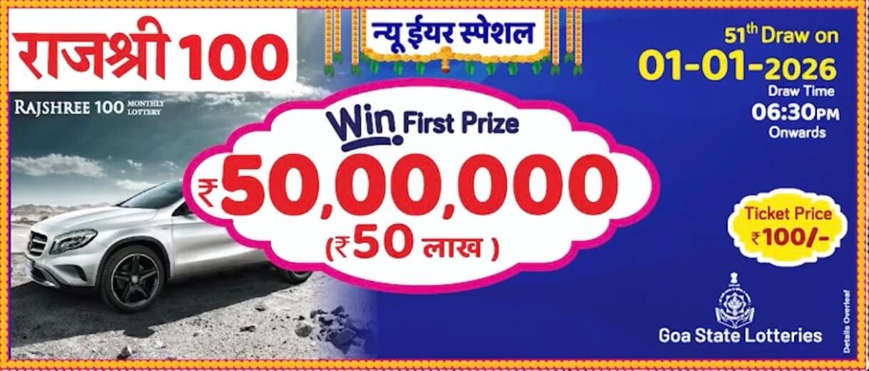Goa State Rajshree 100 Monthly Lottery 1.1.2026 At 6.30 PM
