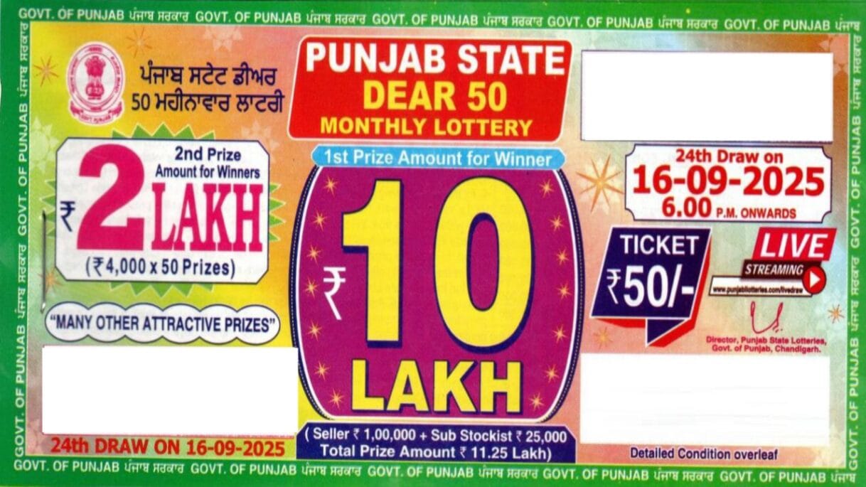 Punjab state dear 50 monthly lottery 16.9.2025 at 6 PM