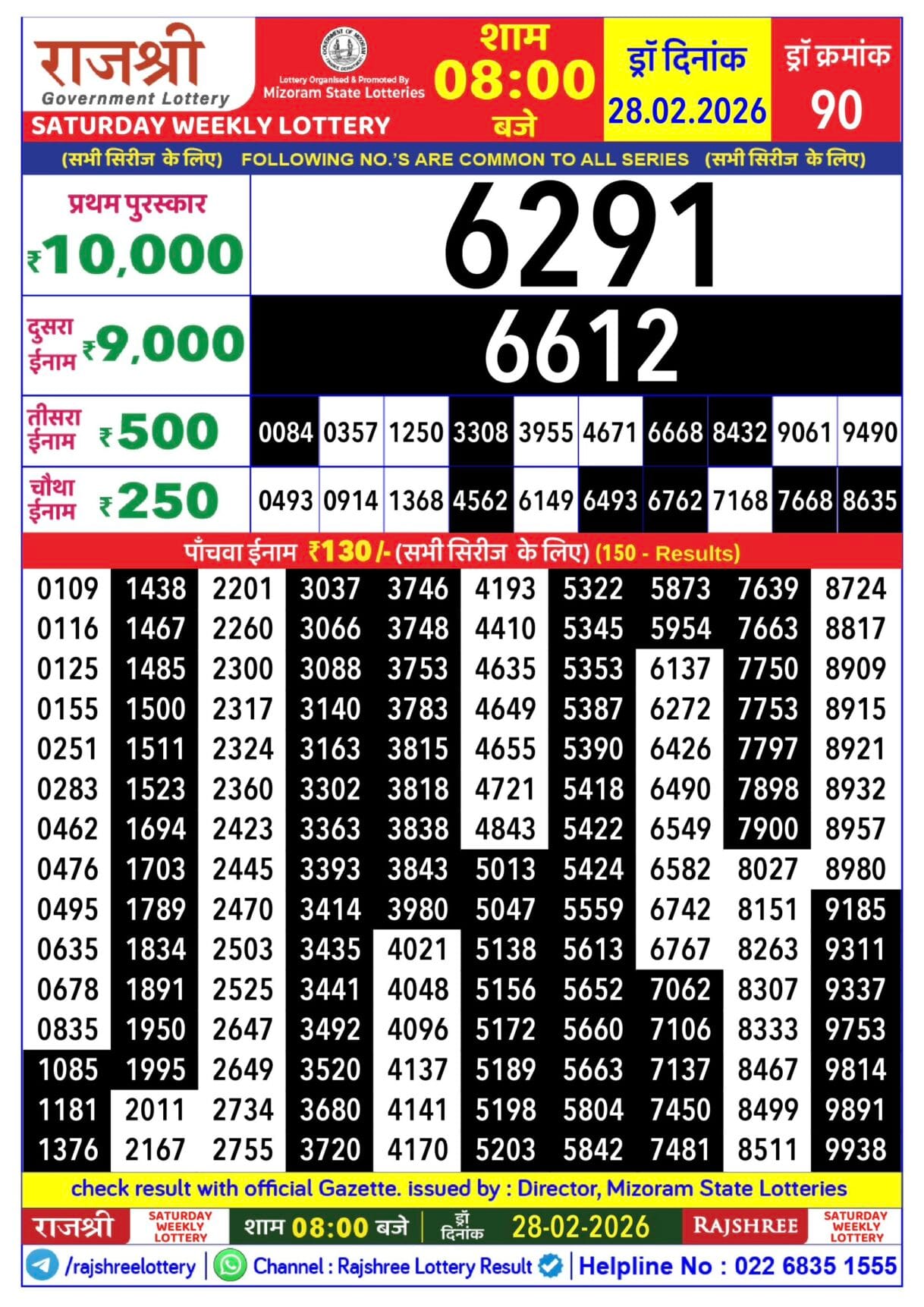 Rajshree Friday Weekly Lottery 27.2.2026 Result 8 PM