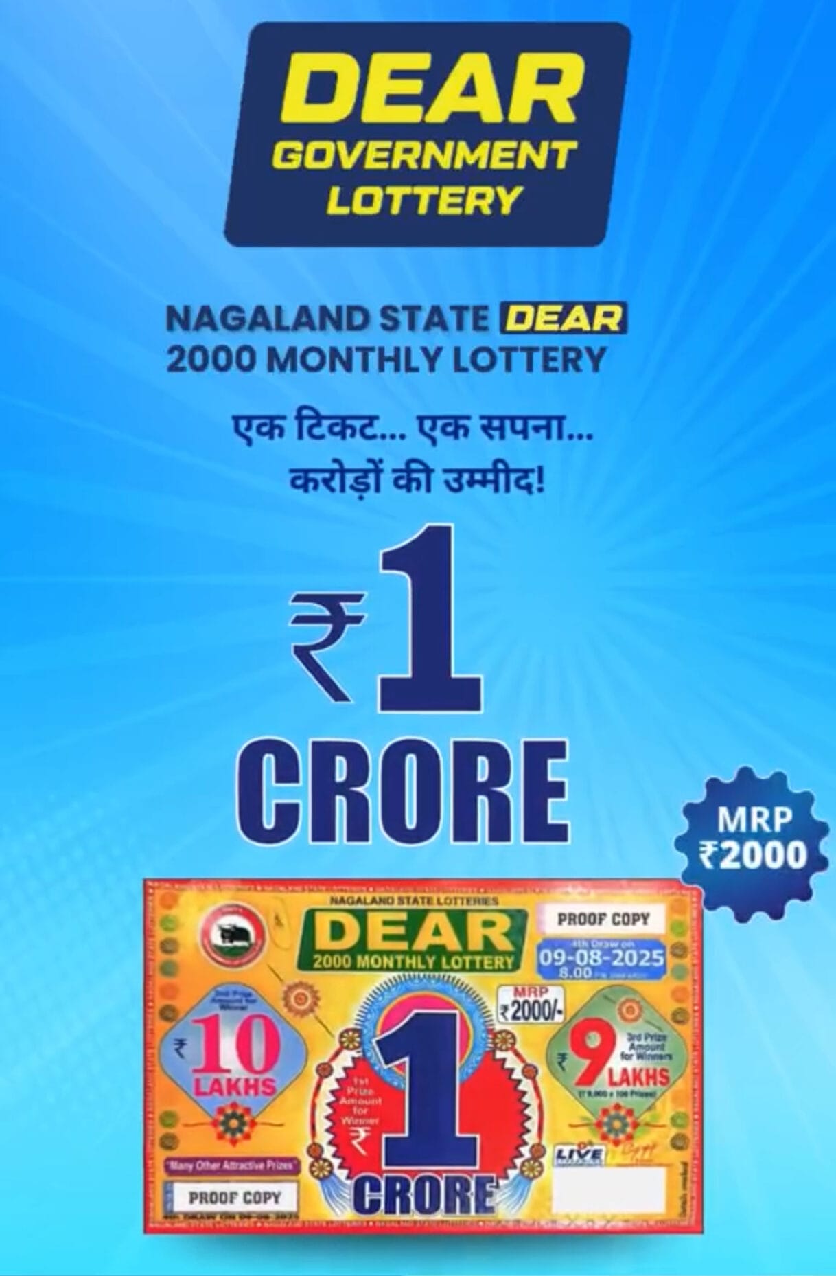 Nagaland State Dear 2000 Monthly Lottery 9 August 2025 At 8 PM
