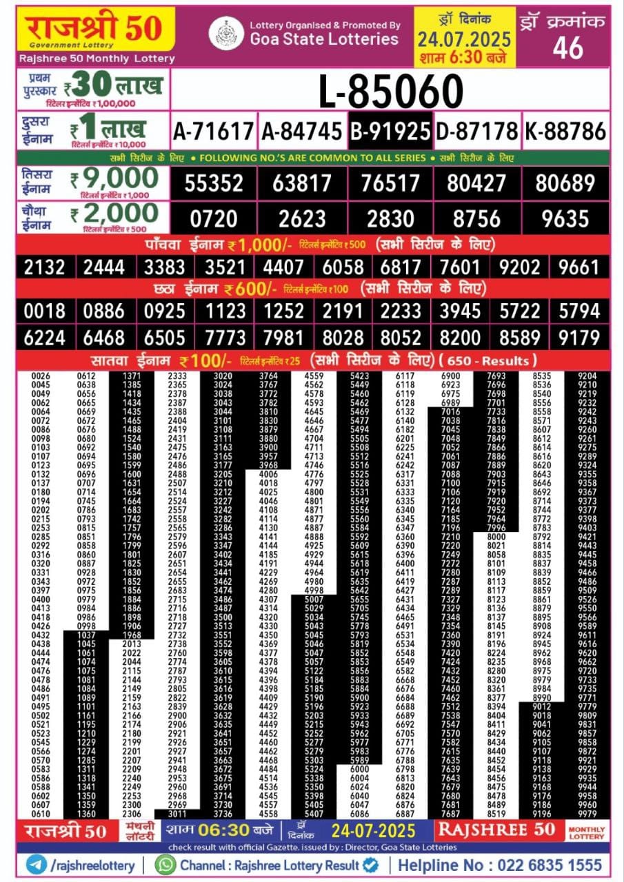 Rajshree 50 monthly Lottery Result 24.07.2025