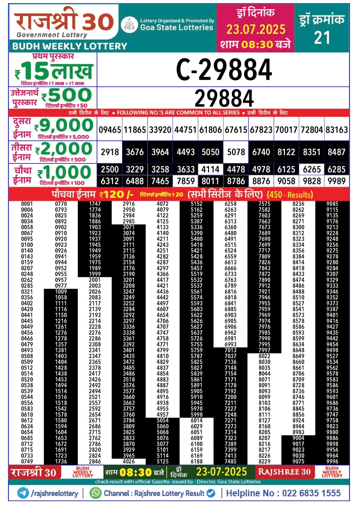 Rajshree 30 Lottery 8:30PM Result 23.07.2025